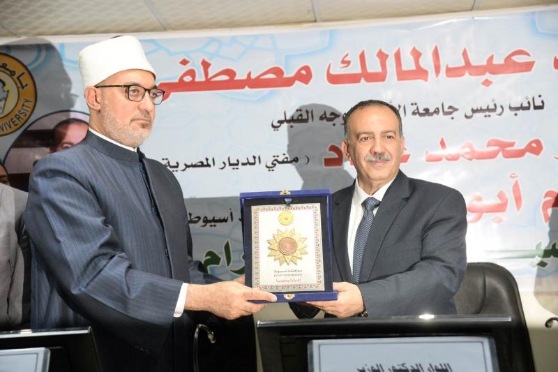 وقدم الدكتور محمد عبد المالك نائب رئيس جامعة الأزهر للوجه القبلي التحية والشكر والتقدير لمفتي الديار المصرية والمحافظ ورئيس جامعة أسيوط على حرصهم على زيارة فرع الجامعة بأسيوط وحضورهم تلك الفعاليات موضحاً أن الأزهر الشريف هو أعرق مؤسسة دينية علمية في العالم يؤدي رسالة عالمية في كافة بلاد العالم، ويدرس بجامعته طلاب من شتى بقاع الأرض العلوم الشرعية والإنسانية وتنشر التآخي بين الأديان وهو أحد أهم ركائز الدولة المصرية وقلعة الإسلام والعلوم المتنوعة حيث يدعو إلى السلم ونبذ الإرهاب ونشر الوسطية مشيراً إلى تقديم الفرع لعدد من الخدمات للمواطنين بمحافظة أسيوط وليس للطلاب فقط وخير دليل على ذلك الخدمات الطبية والصحية أعداد المرضى بالمستشفى الأزهر الجامعي.