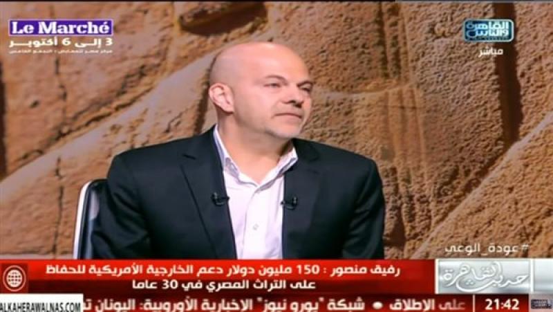 وشدد "منصور"، خلال لقائه مع الإعلامية كريمة عوض، ببرنامج "حديث القاهرة"، المُذاع عبر شاشة "القاهرة والناس"، على أن الخارجية الأمريكية قدمت دعم للحفاظ على التراث المصري في 30 عاما يصل لـ 150 مليون دولار للحفاظ على الحضارة المصرية من إسكندرية إلى أبوسمبل، مؤكدًا أنهم سيلعنون رسميًا عن دعم الحضارة المصرية والمتحف المصري، وهذا المشروع يبدأ يوم 17 عاما، لحماية الأثار والحضارة المصرية من السرقة منخلال الأرشفة، ويشارك بمشروع أرشفة آثار مصر السفارة الأمريكية بمصر ووزارة السياحة والآثار المصرية.