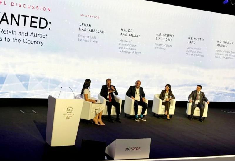 جاء ذلك فى كلمة الدكتور عمرو طلعت خلال مشاركته فى جلسة رفيعة المستوى والتى عُقدت ضمن فعاليات قمة "الآلات يمكنها أن ترى" Machines Can See 2025، التى تستضيفها مدينة دبى بدولة الإمارات العربية المتحدة؛ فى إطار "أسبوع دبى للذكاء الاصطناعي". حيث تناولت الجلسة دور الذكاء الاصطناعى فى جذب المواهب المتميزة، وكيف يمكن لعمليات تطوير الذكاء الاصطناعى أن تساهم فى الحد من هجرة العقول واستقطاب الكفاءات العالمية. وذلك بمشاركة جوبيند سينج ديو وزير التكنولوجيا الرقمية فى ماليزيا، وميوتيا حفيظ وزيرة الاتصالات والشؤون الرقمية فى إندونيسيا، وزهاسلان مادييف وزير التنمية الرقمية والابتكار وصناعة الطيران والفضاء فى كازاخستان.