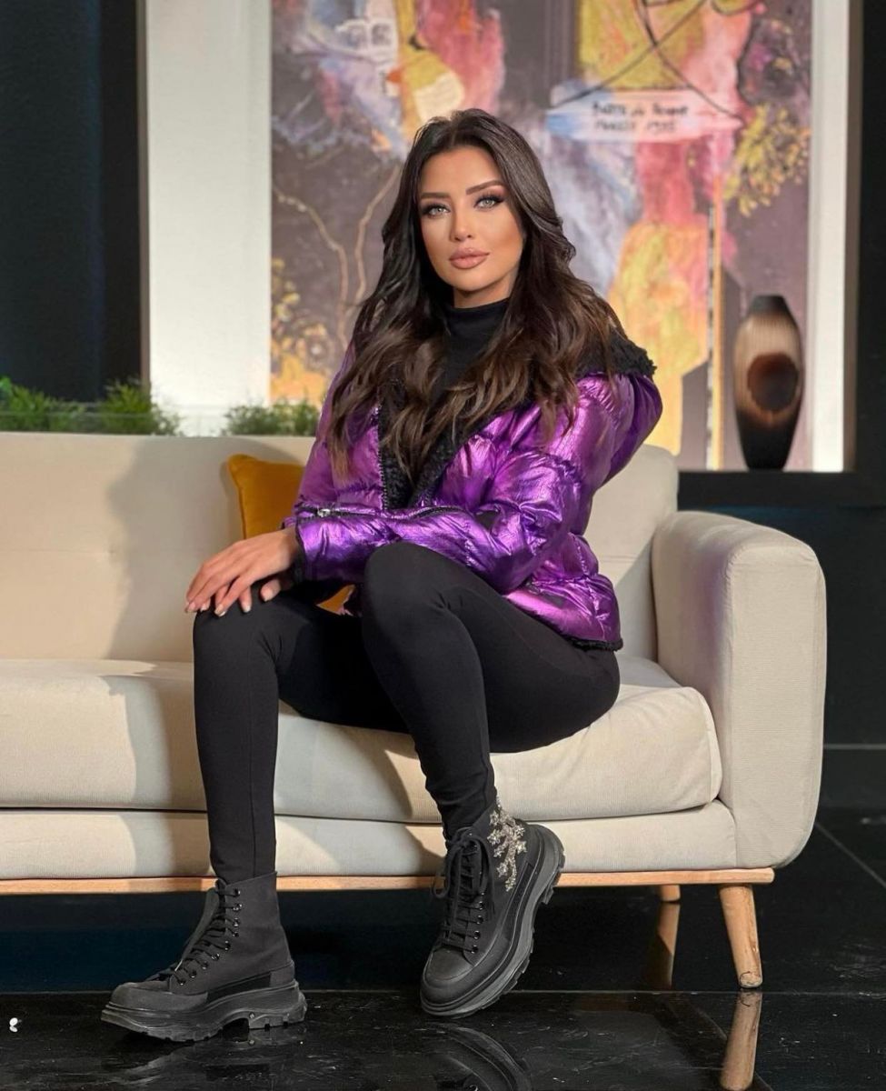رضوى الشربيني تستعرض أنوثتها بالبنفسجي اللامع في ”هي وبس”