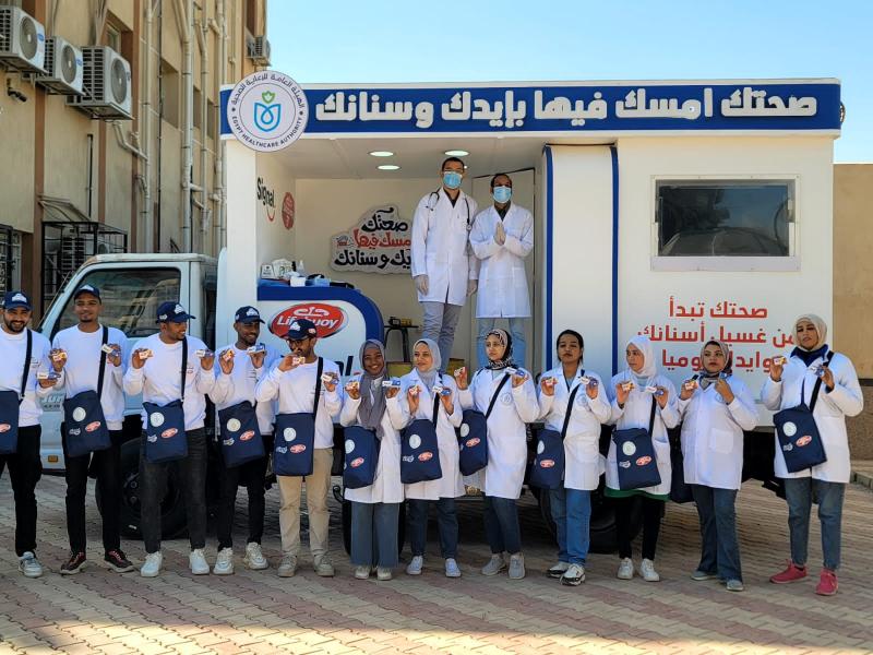 لافتة أن شاحنة حملة « صحتك .. امسك فيها بإيدك وسنانك» التي تجوب عدد من المدارس والأحياء المختلفة بمحافظة أسوان، يوجد بها أحواض مجهزة بغرض تدريب الأطفال وتعليمهم الخطوات السليمة لغسل الأيدي بالماء والصابون، علاوة على بعض الفحوصات المبدئية للكشف عن سلامة الفم والأسنان لكافة المترددين على الشاحنة، من مختلف الفئات العمرية.