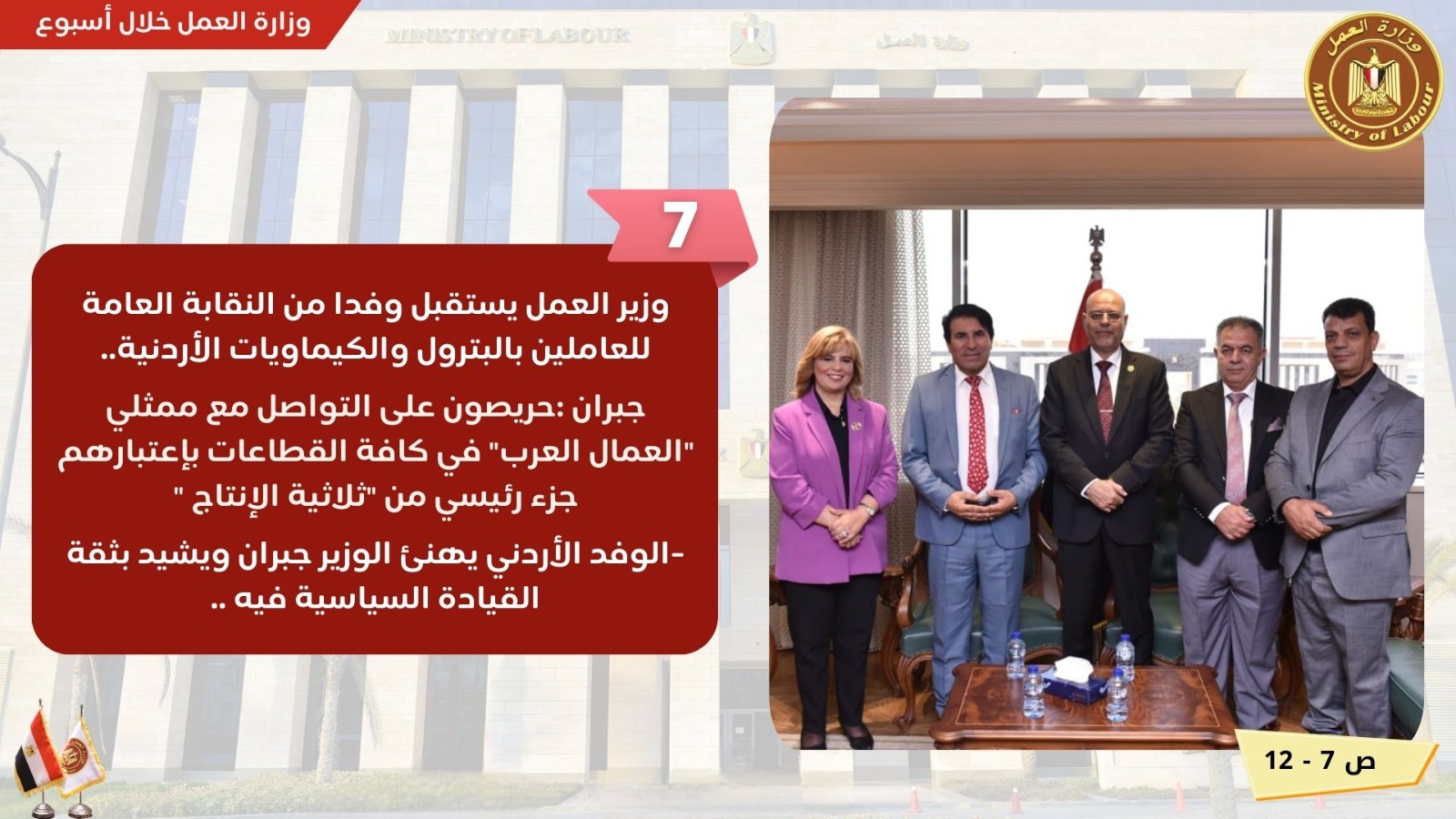 -لقاء مع السفيرة نائلة جبر لبحث ملفات مشتركة..واستقبال وفد من النقابة العامة للعاملين بالبترول والكيماويات الأردنية..
