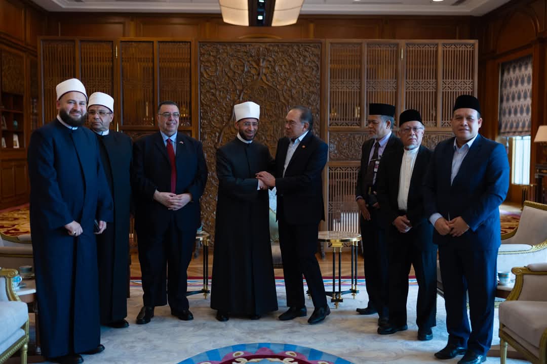 استقبل أنور إبراهيم رئيس وزراء ماليزيا الدكتور أسامة الأزهري وزير الأوقاف، في العاصمة بوتراجايا، مقر الحكومة الماليزية، وذلك خلال زيارة رسمية تهدف إلى تعزيز التعاون بين مصر وماليزيا في المجالات الدينية والثقافية، وتوسيع آفاق العمل المشترك في نشر القيم الإسلامية السمحة وتعزيز خطاب الوسطية والاعتدال.