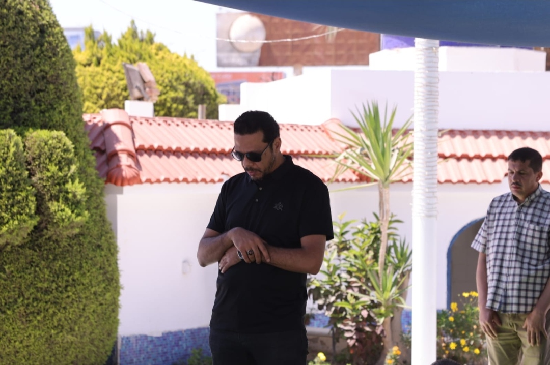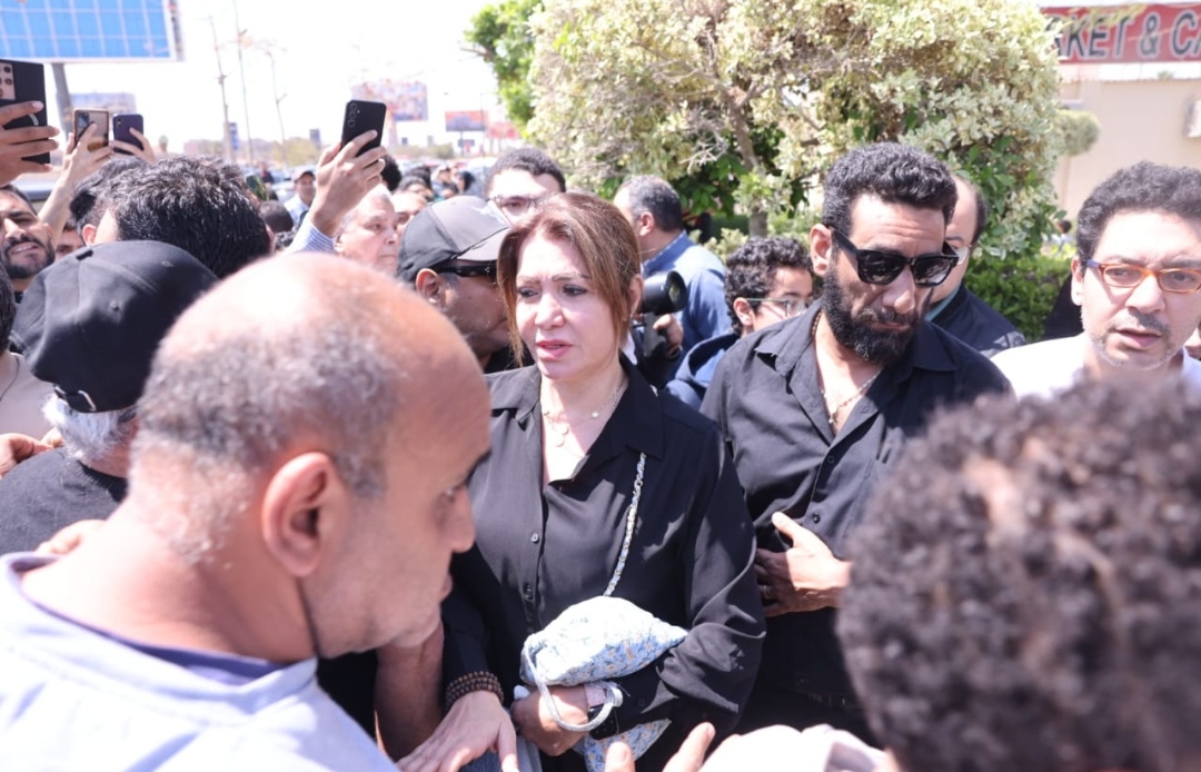 أشرف زكى وأحمد بدير ووفاء عامر يؤدون صلاة الجنازة على زوجة نضال الشافعي.. صور