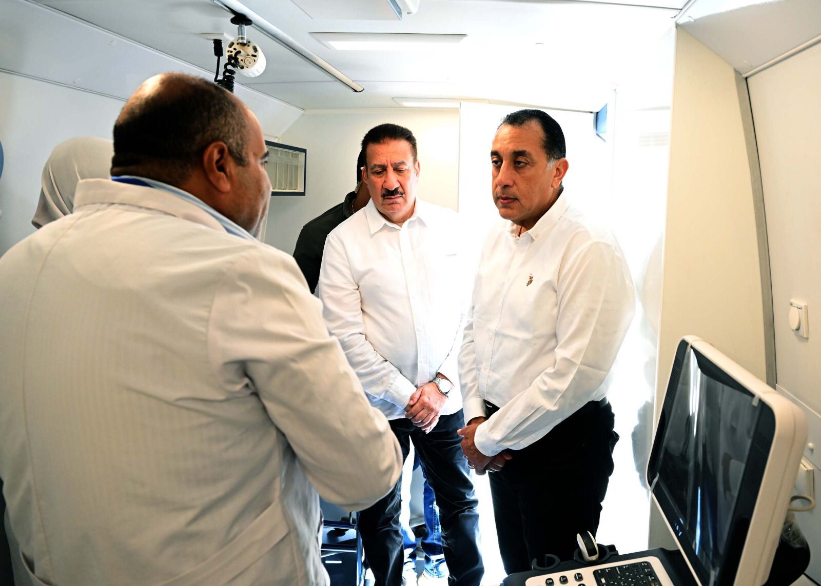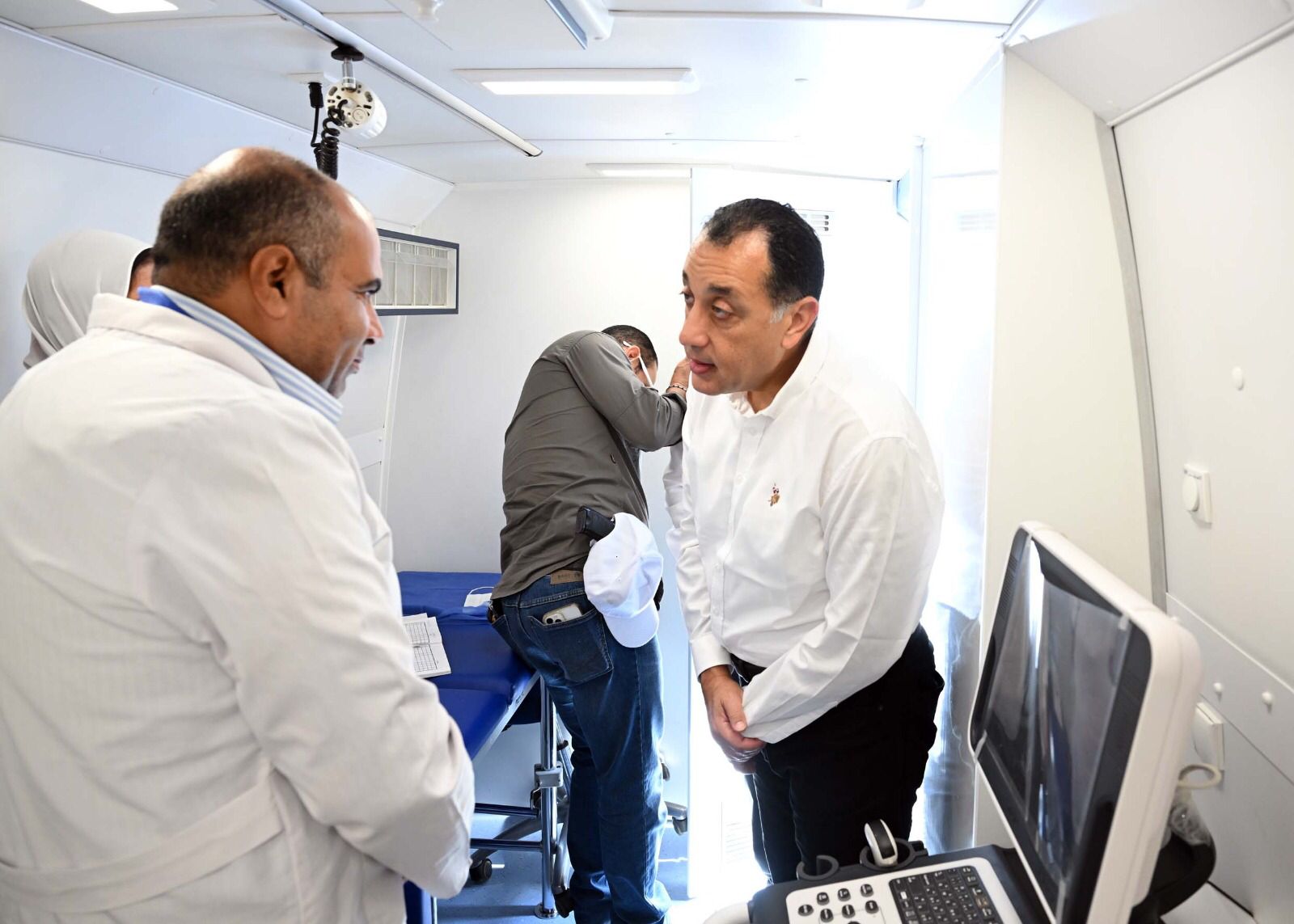 وبعد الانتهاء من جولته في مركز طب شمّا، قام رئيس الوزراء بتفقد قافلة المبادرات الصحية متعددة التخصصات، واستمع الدكتور مصطفى مدبولي إلى شرح الدكتورة/ الشيماء نجدي، منسق القوافل العلاجية بمحافظة المنوفية، والتي أوضحت أن القافلة تضمنت 6 عيادات متنقلة، شملت تخصصات الباطنة والنساء والجراحة والأسنان بالإضافة إلى الصيدلية ووحدة الأشعة.