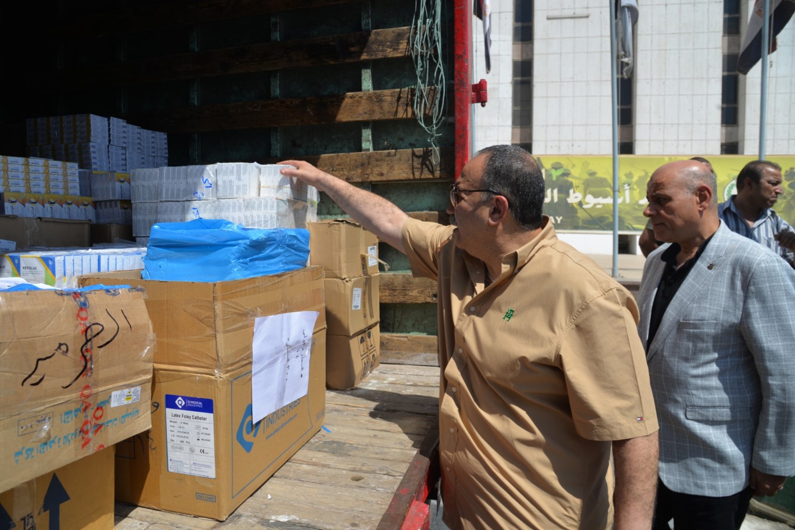 محافظ أسيوط يستقبل شحنة أدوية وكراسي كهربائية لدعم المستشفيات وذوي الإعاقة