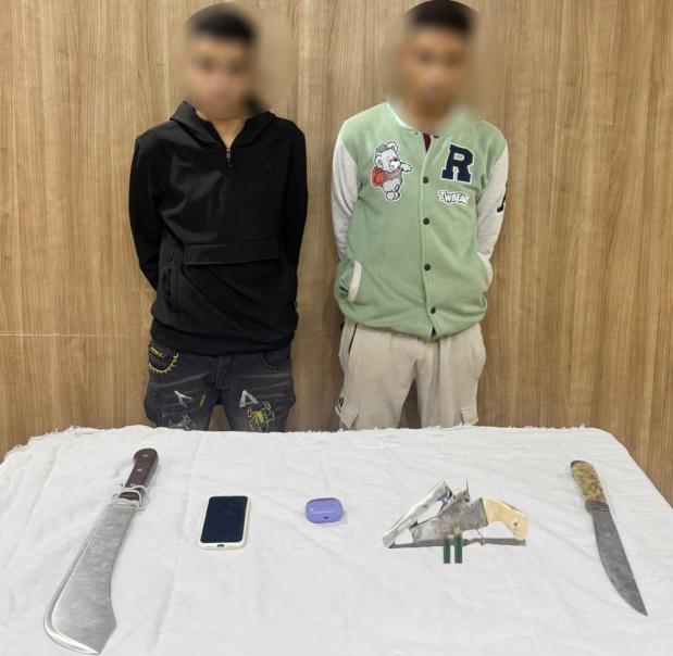 أمكن تحديد وضبط المشكو فى حقهما (عاطلان "لهما معلومات جنائية"- مقيمان بدائرة المركز) وبحوزتهما (فرد خرطوش- 2 سلاح أبيض) وبمواجهتهما اعترفا بارتكاب الواقعة على النحو المشار إليه ، وتم بإرشادهما ضبط المسروقات المستولى عليها، وتم إتخاذ الإجراءات القانونية .