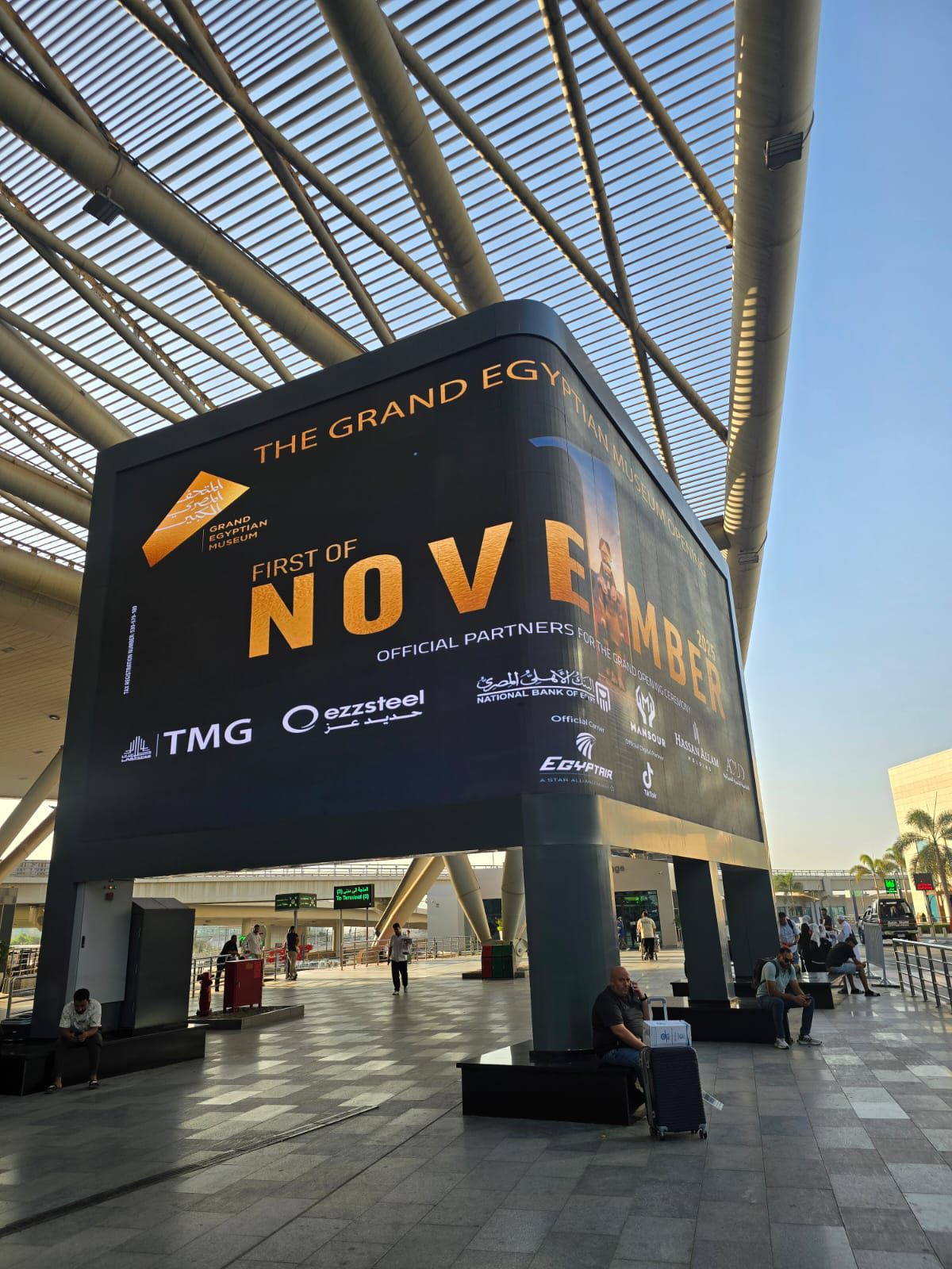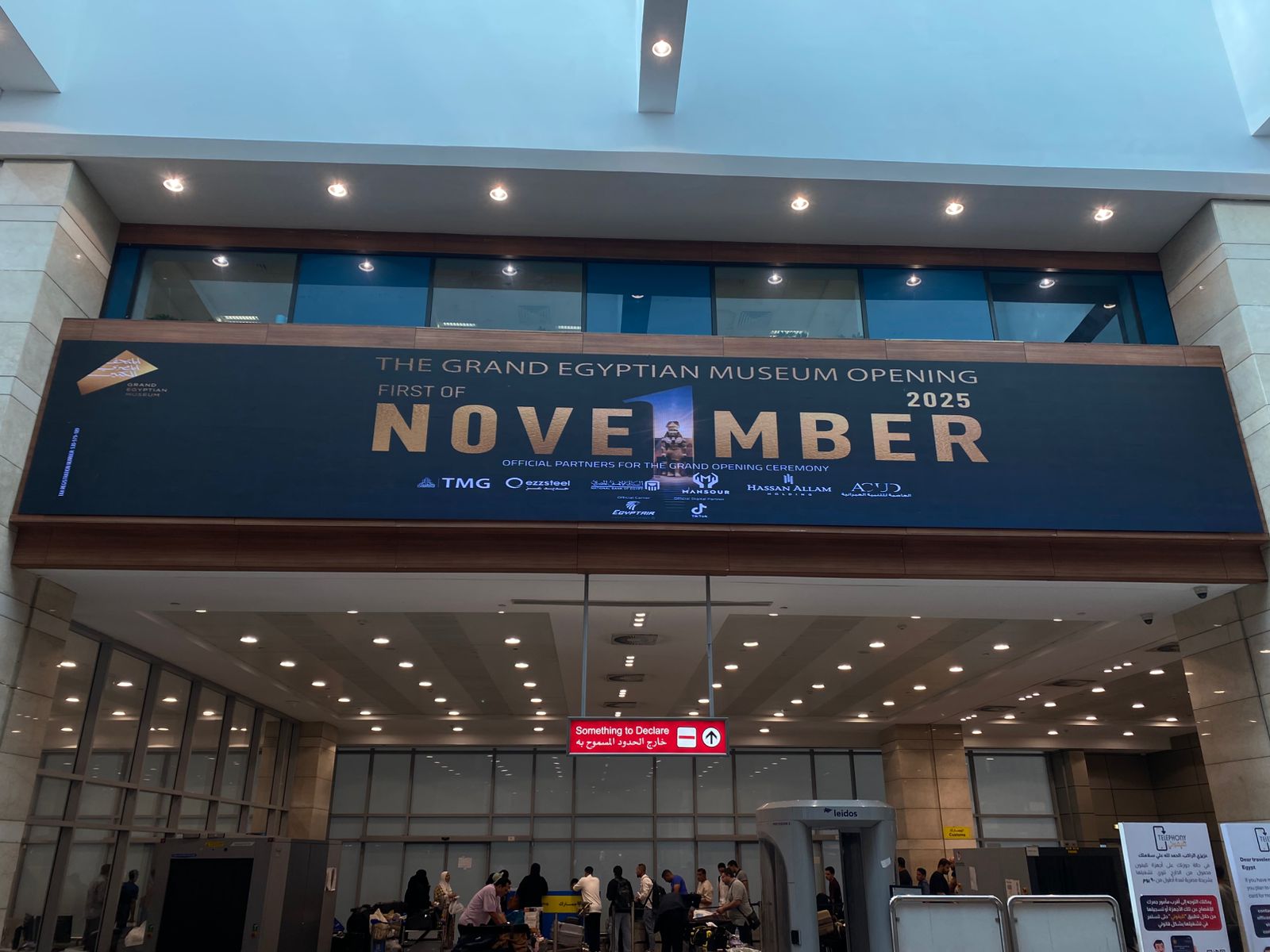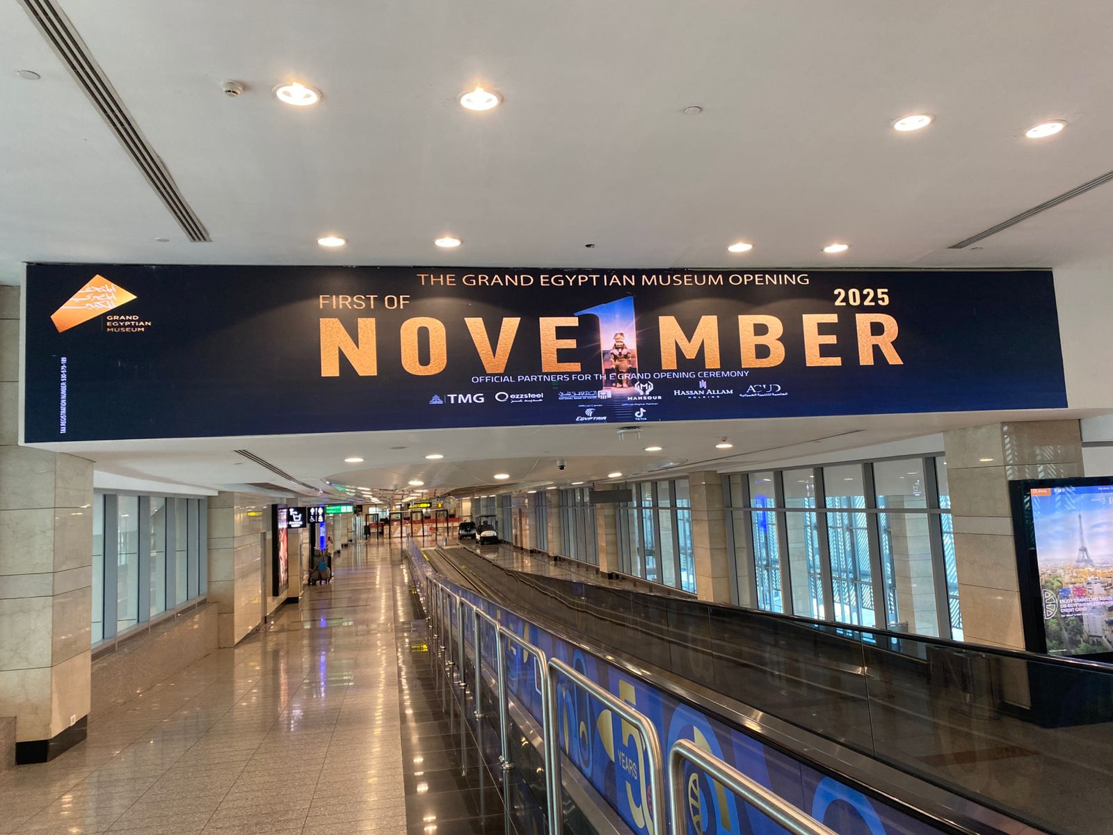مطار القاهرة الدولي يتزين بلوحات الترويج لافتتاح المتحف المصري الكبير .. صور