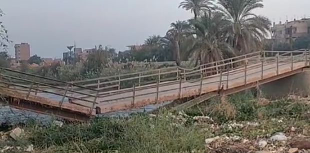انهيار كوبري مشاة مهجور على ترعة الإبراهيمية بطما