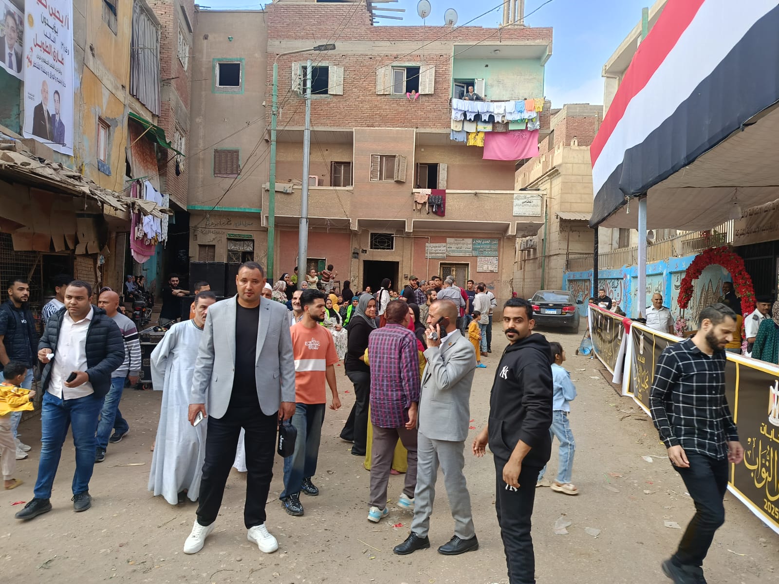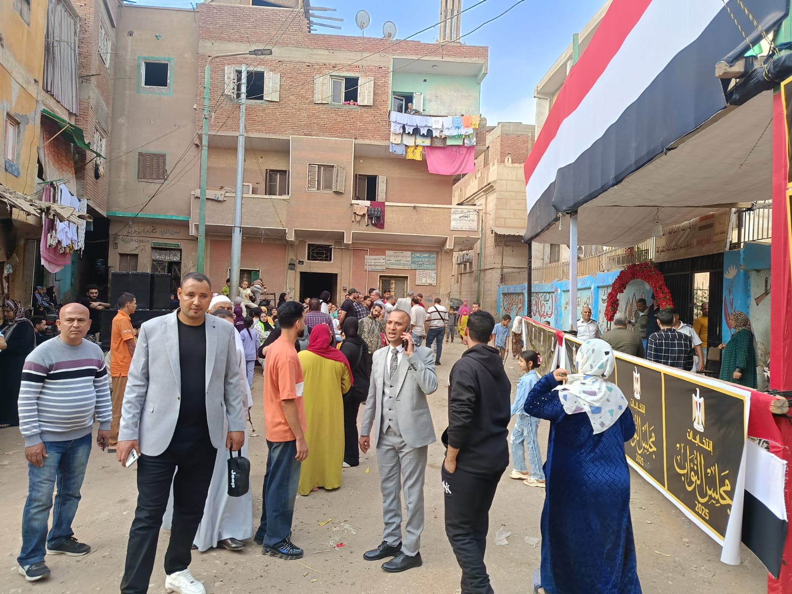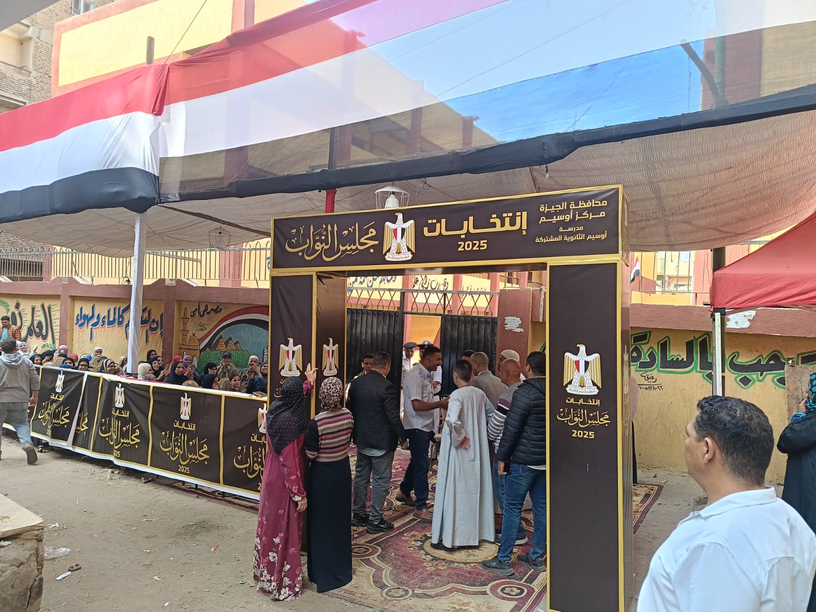 في منطقة منشأة القناطر التابعة للدائرة 12 والتي تضم كلا من " منشأة القناطر وأوسيم والوراق "، للإدلاء بأصواتهم في اليوم الأول من المرحلة الاولى لانتخابات مجلس النواب.