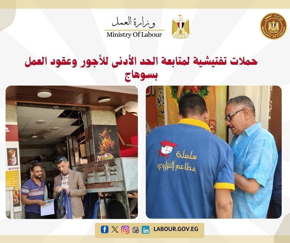 حملات تفتيشية لمتابعة الحد الأدنى للأجور وعقود العمل بسوهاج