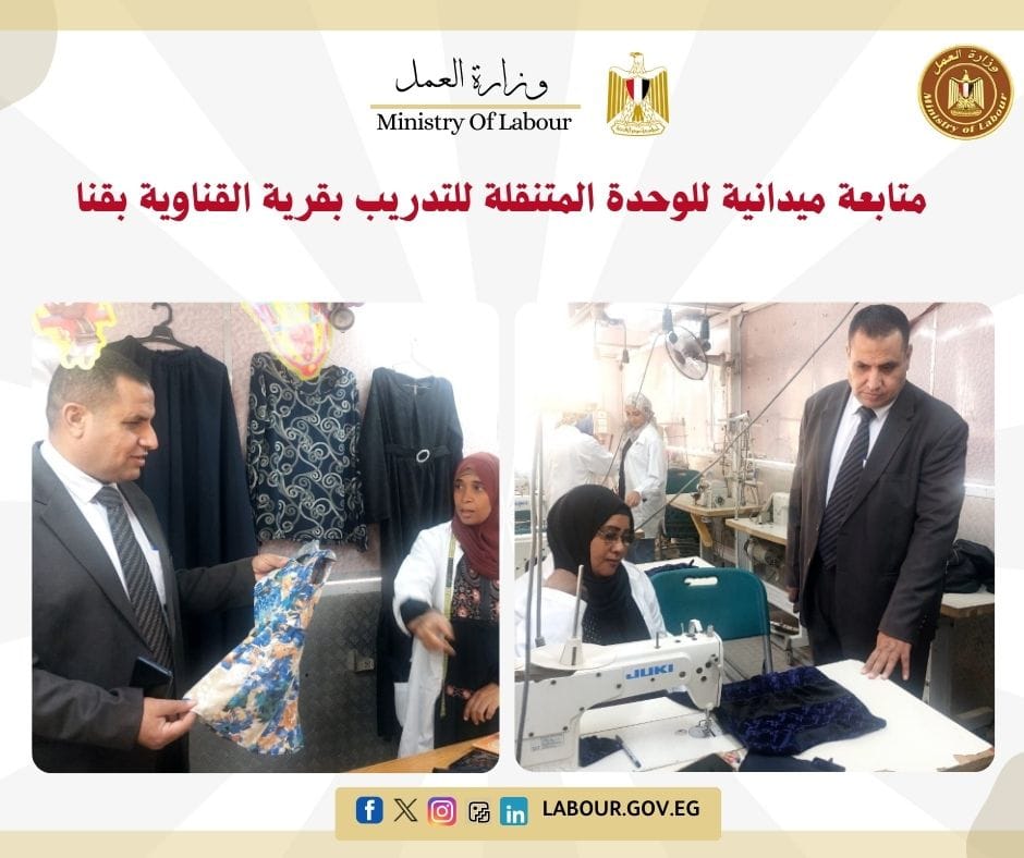قام مدير مديرية العمل بقنا، أحمد محمد معوّض، بزيارة ميدانية للوحدة المتنقلة للتدريب بقرية القناوية، تفقد خلالها سير الدورة التدريبية في مجال الخياطة والتفصيل. أكد المدير على أهمية هذه البرامج في تمكين السيدات والفتيات من اكتساب مهارات عملية لتحسين الدخل، ووجه بضرورة توفير كافة الاحتياجات لضمان جودة التدريب في إطار دعم مبادرات التشغيل وريادة الأعمال.