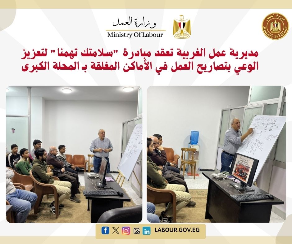 مديرية عمل الغربية تعقد مبادرة "سلامتك تهمنا" لتعزيز الوعي بتصاريح العمل في الأماكن المغلقة بـ المحلة الكبرى