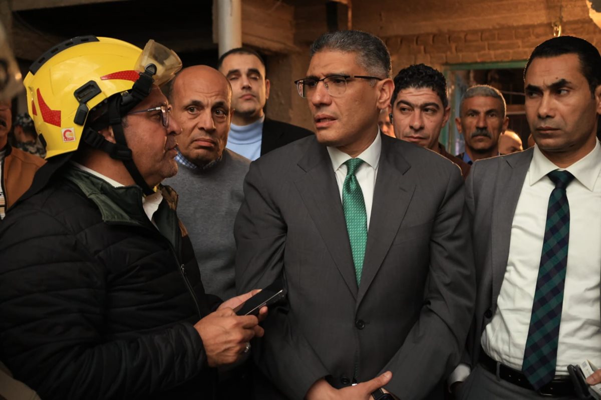 محافظ الجيزة يتفقد موقع حادث التسرب الغازي بعقار سكني في إمبابة