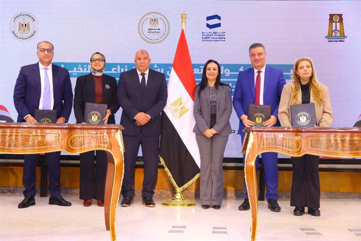 وزيرة التضامن ومحافظ الوادي الجديد يشهدان توقيع 5 بروتوكولات لإقامة مشروعات تنموية