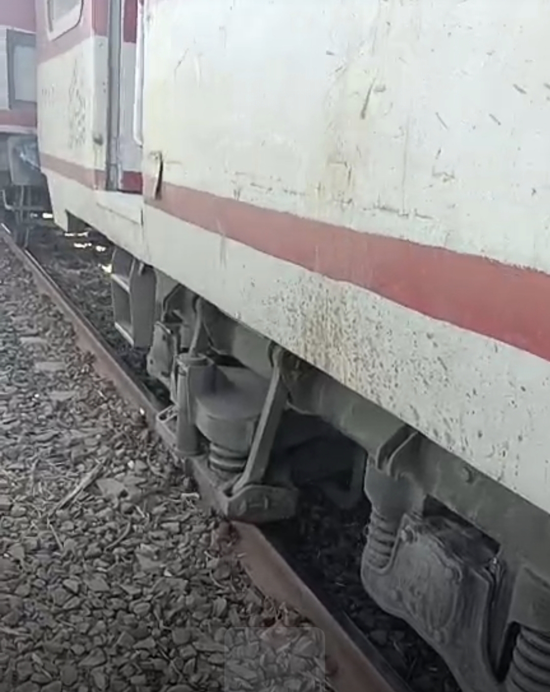 خرجت إحدى عربات القطار رقم 544 المتجه من طنطا إلى القاهرة عن القضبان، وذلك أثناء خروجه من محطة سكة حديد الحامول بمحافظة المنوفية، دون وقوع أي إصابات بين الركاب.