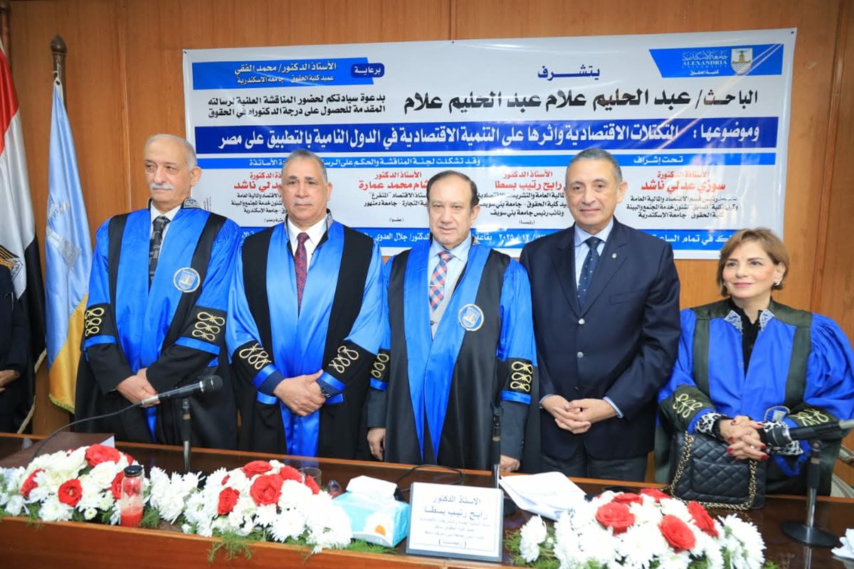 استضافت كلية الحقوق بجامعة الإسكندرية، برعاية الأستاذ الدكتور محمد الفقي، عميد الكلية، المناقشة العلنية لرسالة الدكتوراه المقدمة من الباحث عبدالحليم علام، نقيب المحامين- رئيس اتحاد المحامين العرب، وذلك لنيل درجة الدكتوراه في الحقوق.
