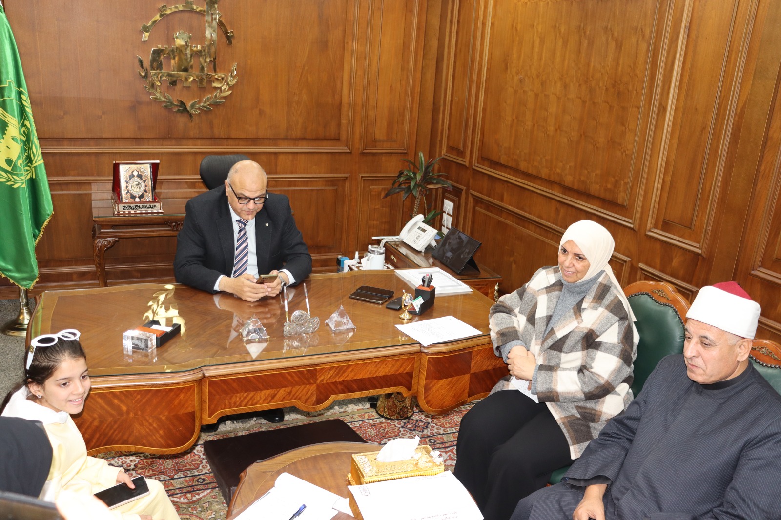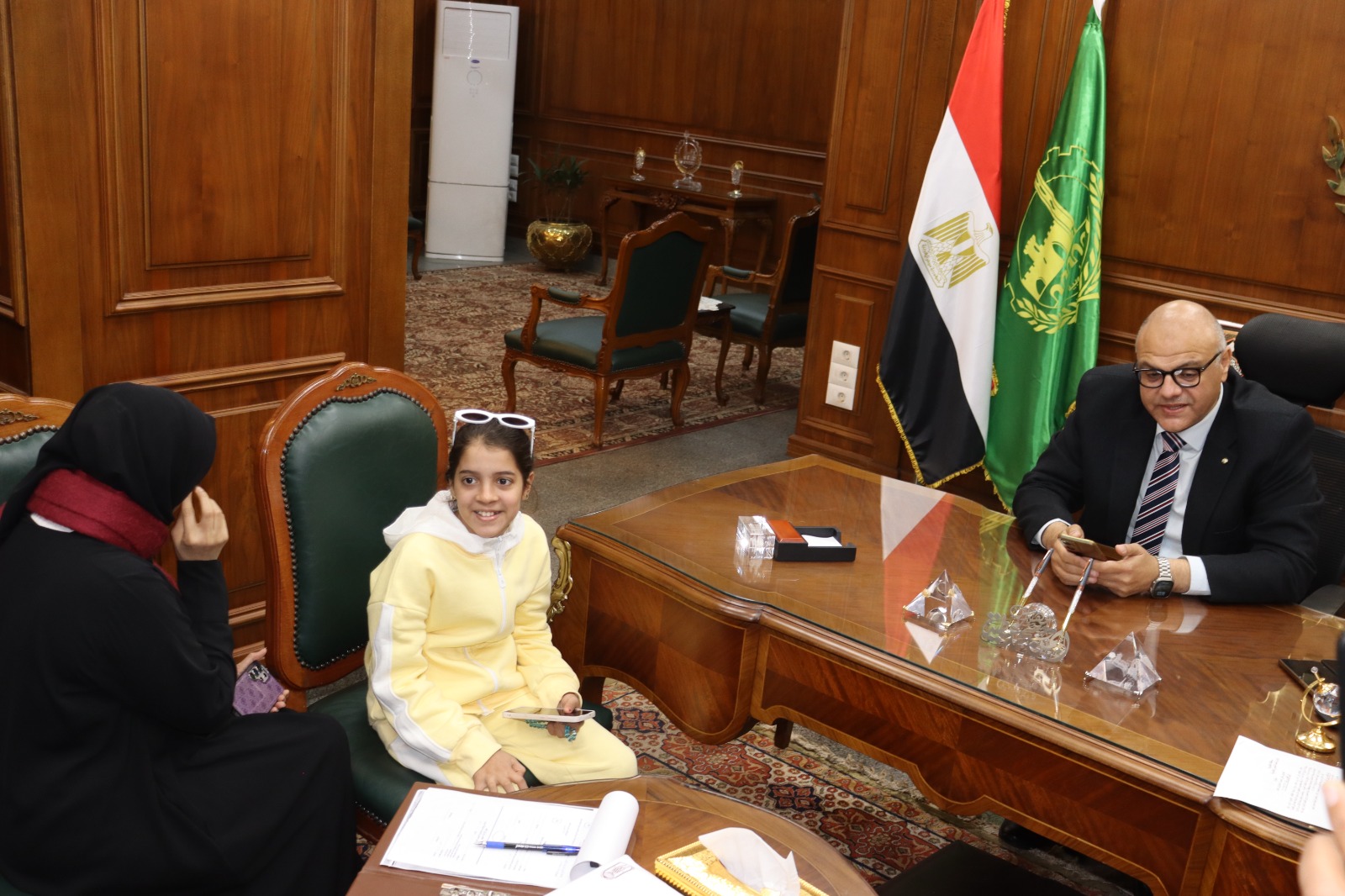 محافظ القليوبية يستقبل الطالبة الفلسطينية «ريتاج» لإنهاء إجراءات التحاقها بالمعاهد الأزهرية