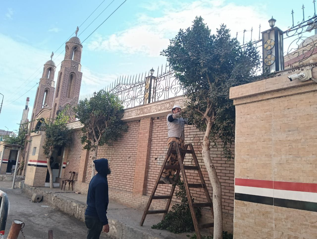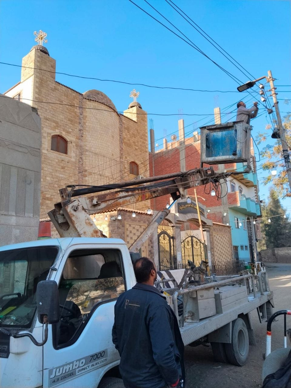 كما تابع رئيس الحي أعمال صيانة أعمدة الإنارة العامة بمحيط الكنائس وكذلك دهان البلدورات والأرصفة لإضفاء لمسة جمالية وحضارية.