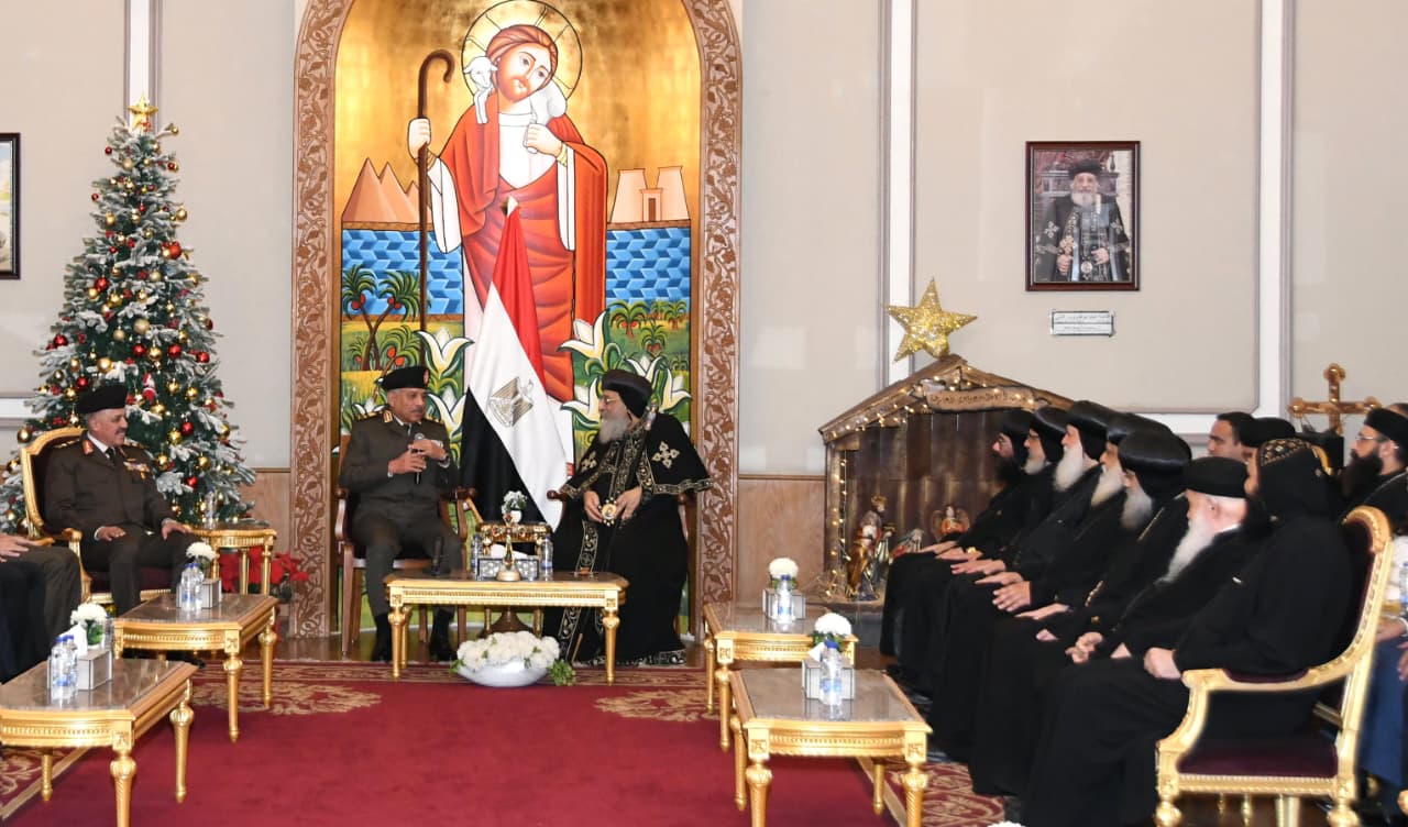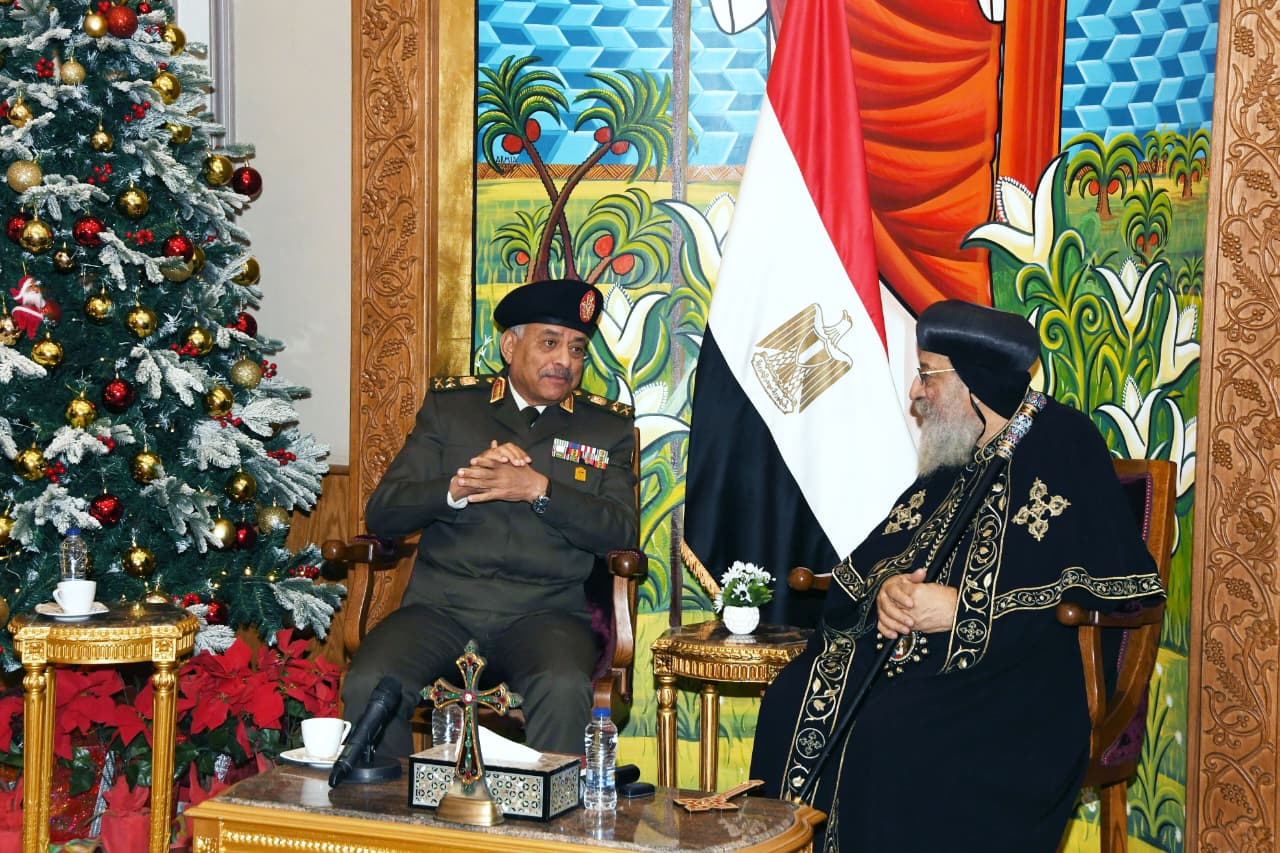 وزير الدفاع يتقدم وفد القوات المسلحة لتهنئة البابا تواضروس بمناسبة عيد الميلاد المجيد| صور