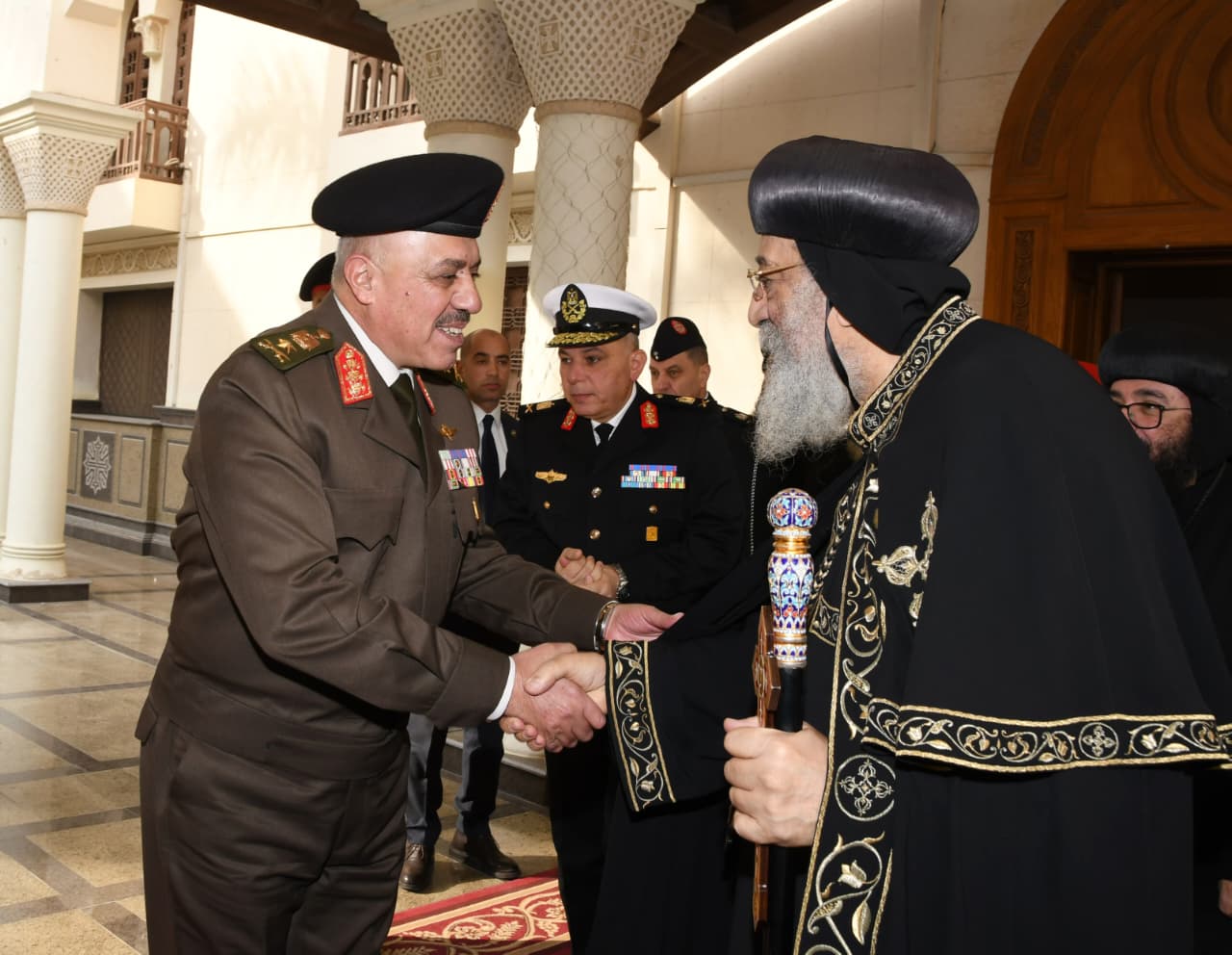 قام الفريق أول عبد المجيد صقر القائد العام للقوات المسلحة وزير الدفاع والإنتاج الحربى يرافقه الفريق أحمد خليفة رئيس أركان حرب القوات المسلحة وقادة الأفرع الرئيسية وعدد من قادة القوات المسلحة بتقديم التهنئة لقداسة البابا تواضروس الثانى بابا الإسكندرية وبطريرك الكرازة المرقسية بمناسبة عيد الميلاد المجيد وذلك بمقر الكاتدرائية المرقسية بالعباسية .