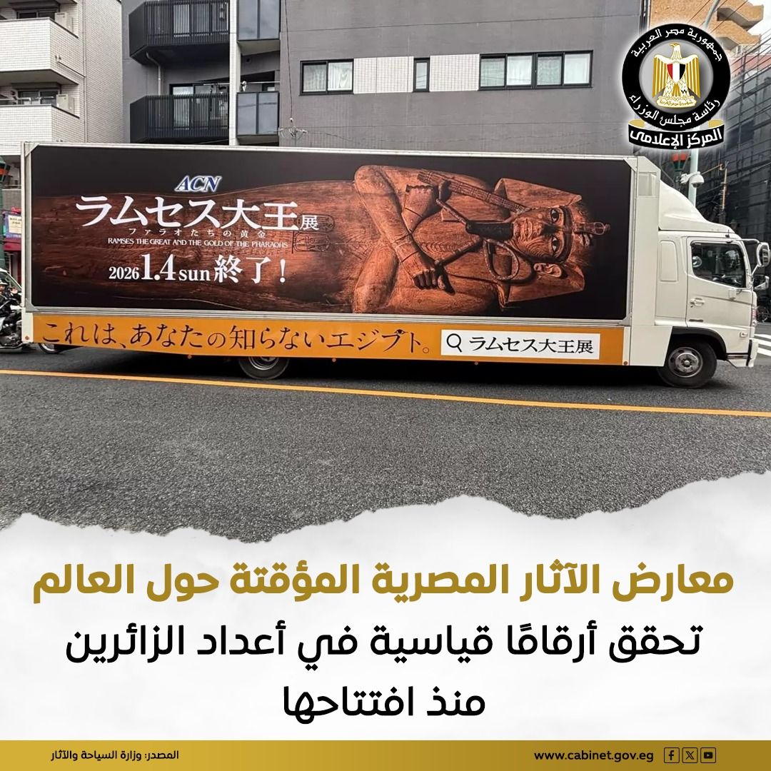 تشهد معارض الآثار المصرية المؤقتة والمُقامة حاليًا في عدد من دول العالم نجاحًا وإقبالًا جماهيريًا واسعًا، بما يعكس الشغف العالمي بالحضارة المصرية العريقة، ويؤكد مكانتها الفريدة كإحدى أعرق الحضارات الإنسانية وأكثرها جذبًا للسائحين.