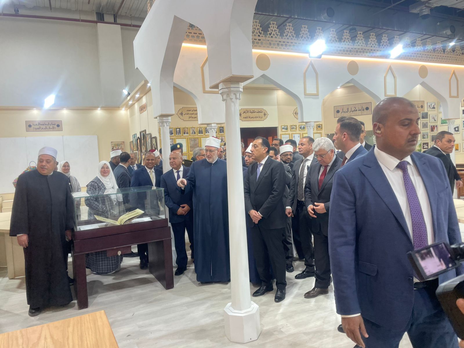 تفقد الدكتور مصطفى مدبولي جناح مشيخة الأزهر الشريف بمعرض القاهرة الدولي للكتاب في دورته الـ 57 ، حيث استمع لشرح حول الجناح وما يحتويه من كتب نادرة ومتحف للمخططات النادرة .