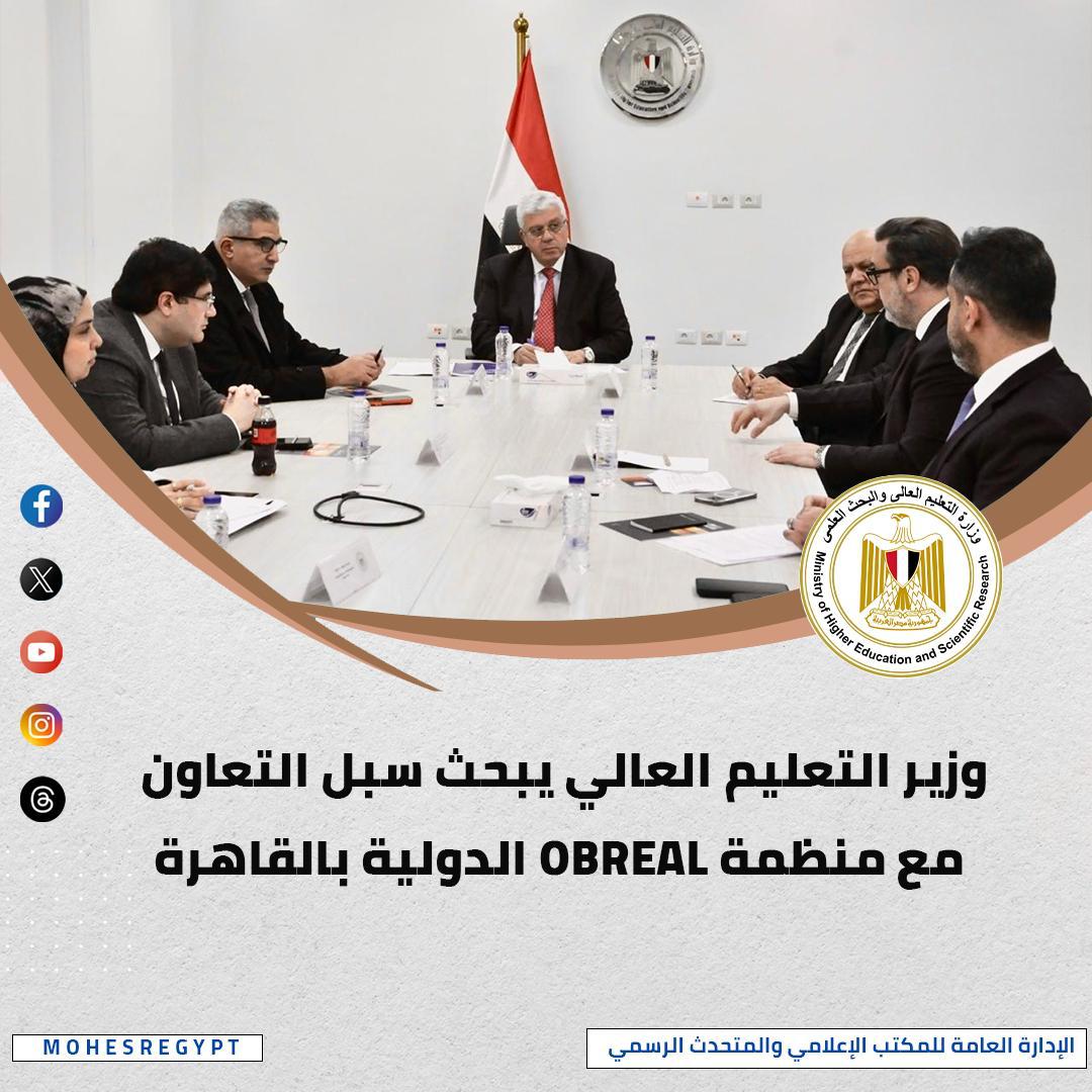استقبل الدكتور أيمن عاشور، وزير التعليم العالي والبحث العلمي، وفد منظمة OBREAL الدولية، لبحث سبل تعزيز التعاون المشترك في مجالات التعليم العالي والبحث العلمي، وخلال الاجتماع تم استعراض تفاصيل مؤتمر «الحوار بين الأقاليم حول التعليم والتنمية»، والذي يشهد مشاركة واسعة لممثلين عن الحكومات والجامعات والمنظمات الدولية من أفريقيا وأمريكا اللاتينية وأوروبا، حيث يناقش قضايا تطوير التعليم العالي، والبحث العلمي، والابتكار، ودور الجامعات في دعم التنمية المستدامة.