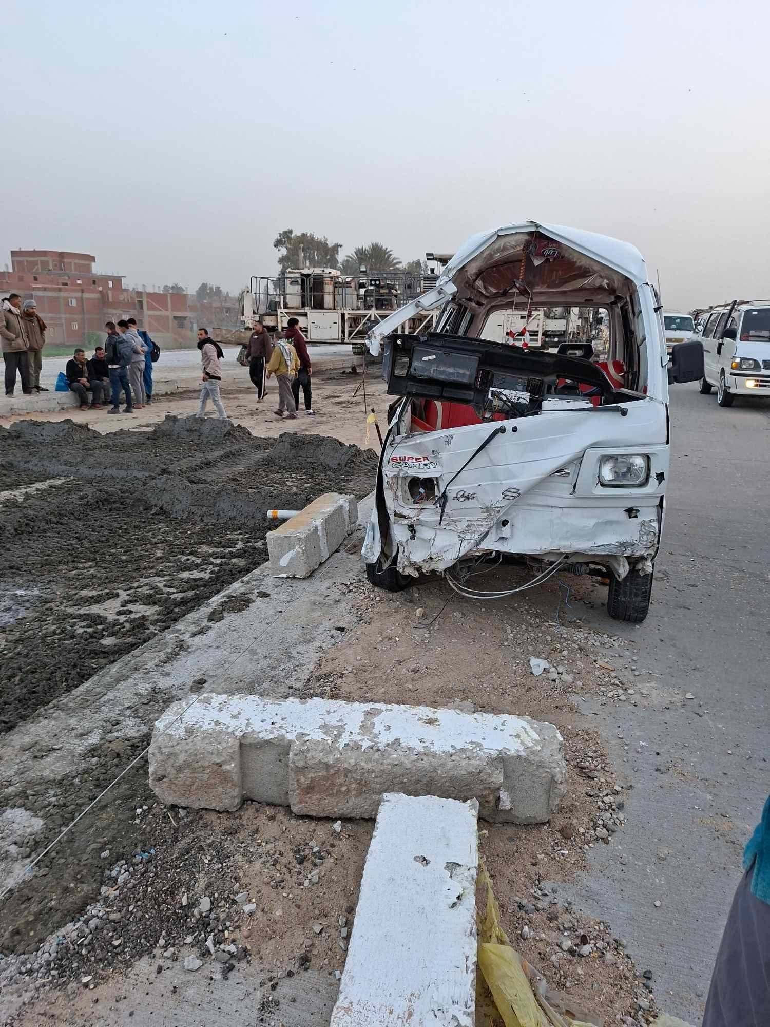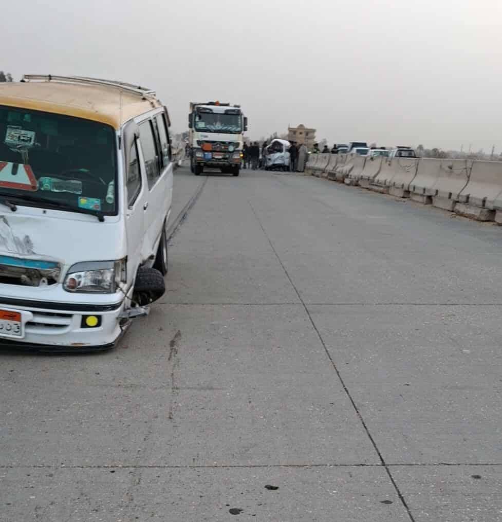 لقي شخص مصرعه وأصيب 4 آخرين في حادث تصادم سيارة ميكروباص مع سوزوكي علي الطريق الإقليمي.
