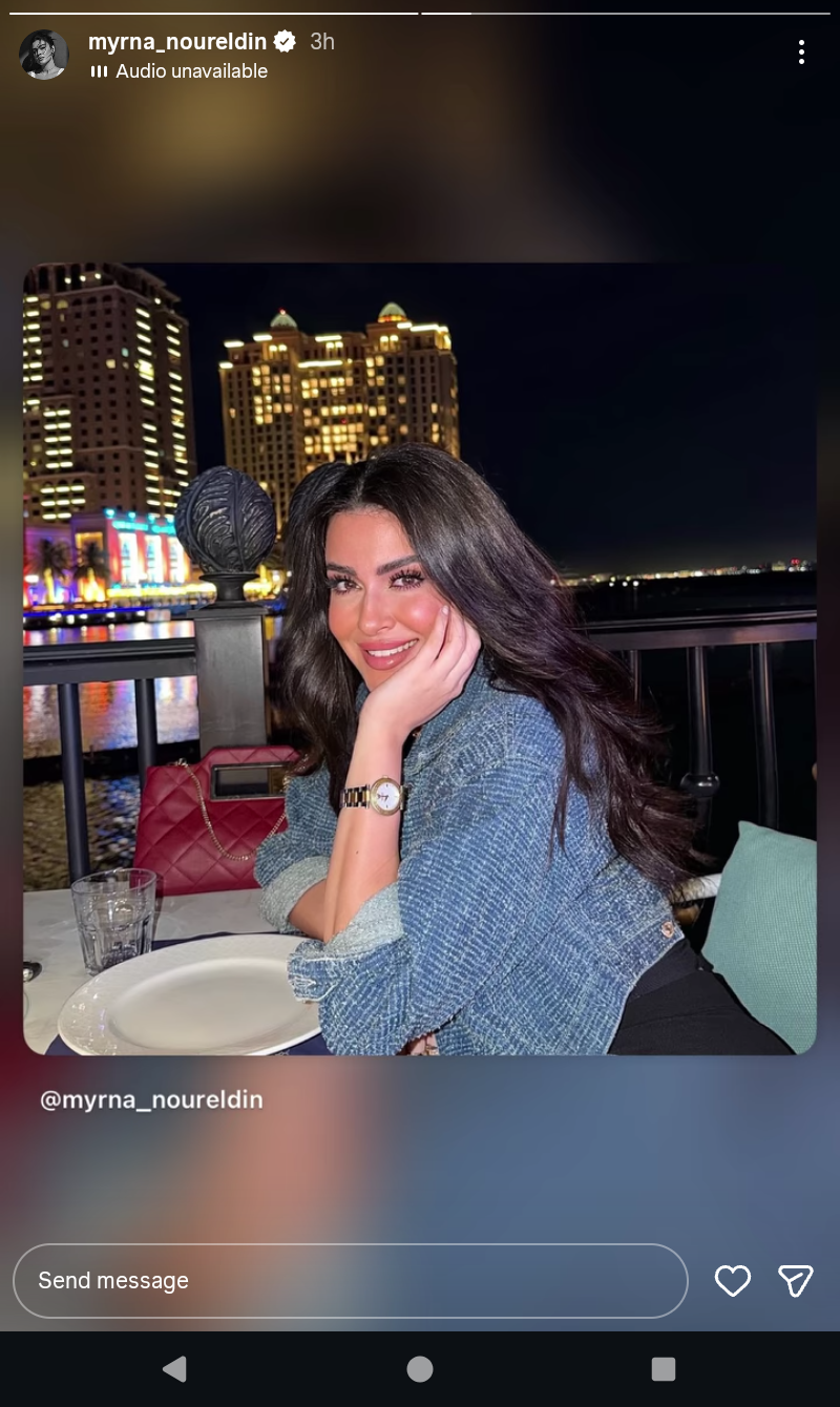 شاركت الفنانة ميرنا نور الدين متابعيها صورة جديدة لها عبر صفحتها على موقع التواصل الاجتماعي إنستجرام خلال خاصية الاستوري.