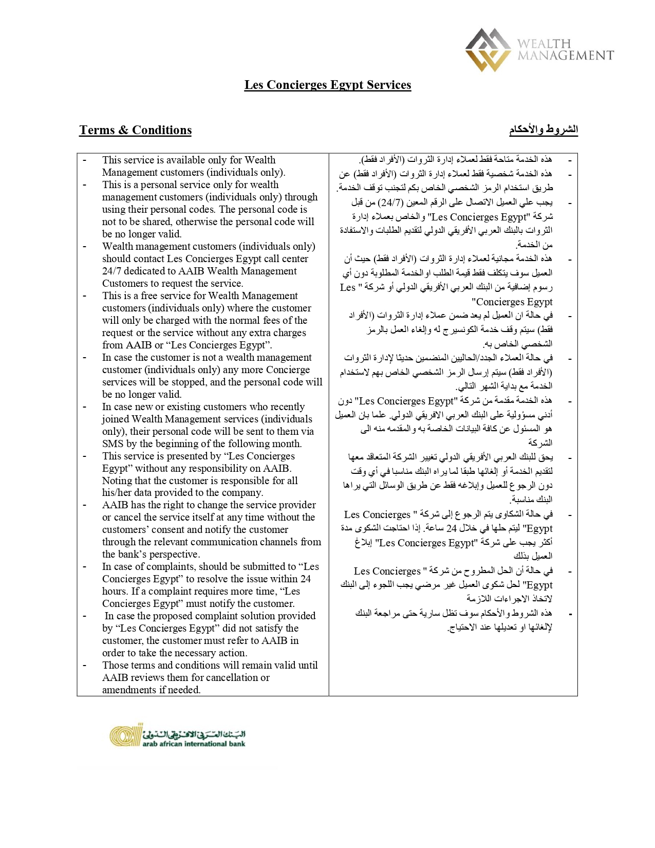 وتوفر خدمة AAIB Wealth Concierge باقة متكاملة من خدمات الرعاية المنزلية ونمط الحياة، بما يساعد العملاء على توفير الوقت والجهد، والتمتع بتجربة متميزة تلبي مختلف احتياجاتهم الشخصية.