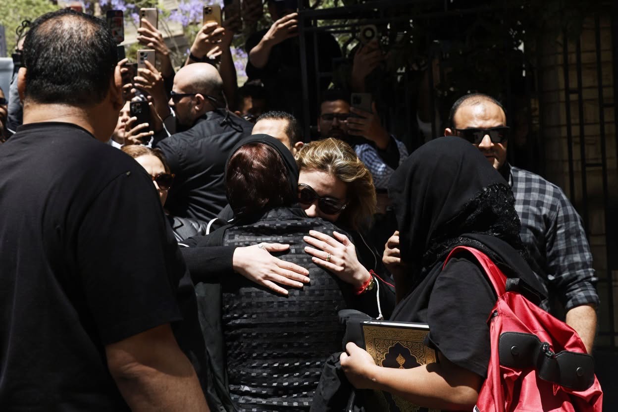 لبلبة وكريم عبد العزيز يساندان منة شلبي في جنازة والدها