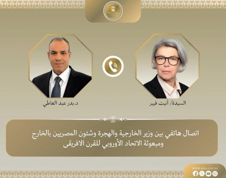 جرى اتصالان هاتفيان بين د. بدر عبد العاطي وزير الخارجية والهجرة وشئون المصريين بالخارج مع كل من "جان نويل بارو" وزير خارجية فرنسا، و "لارس لوكه راسموسن" وزير خارجية الدنمارك وذلك في...